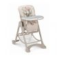 6 altezze, 4 inclinazioni dello schienale, movimento sincronizzato di schienale e poggiapiedi, 3 tavolette regolabili e removibili, vani portaposate, morbida imbottitura, cinghia a 5 punti, ruote posteriori con freno, capiente cestino. Si pulisce facilmente con una spugnetta. Super compatto, chiuso sta in piedi da solo. Si utilizza facilmente con una sola mano.