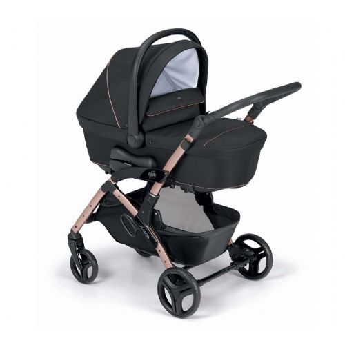 Chiusura a libro compatta con la seduta in entrambe le posizioni di marcia, con maniglia da trasporto