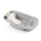 Con 2 sedute anatomiche e antiscivolo (una inclinata per bimbi da 0 a 6 mesi e una seduta con braccioli per bimbi da 6 a 12 mesi), vani portasapone e porta spugnetta, doccino, piedini di supporto, tappo per lo scarico dell’acqua.